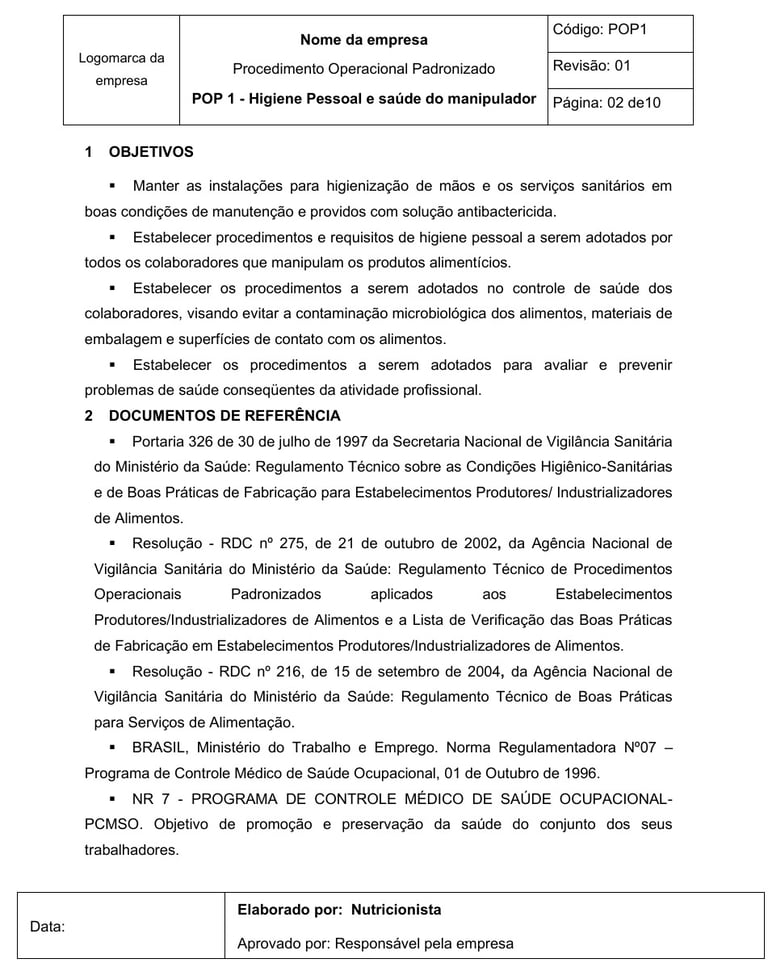 São 60 modelos de POP's - PROCEDIMENTO OPERACIONAL PADRONIZADO